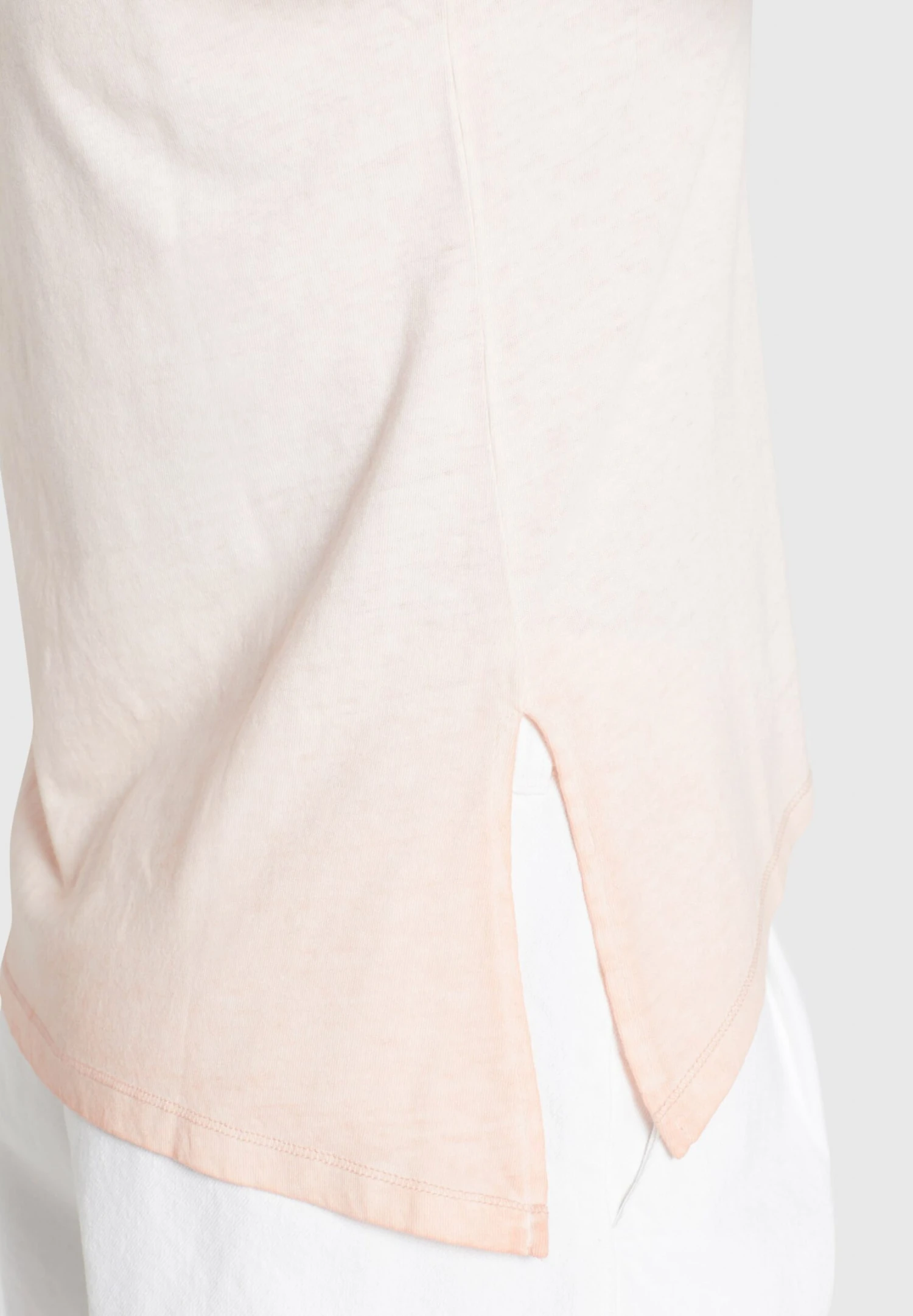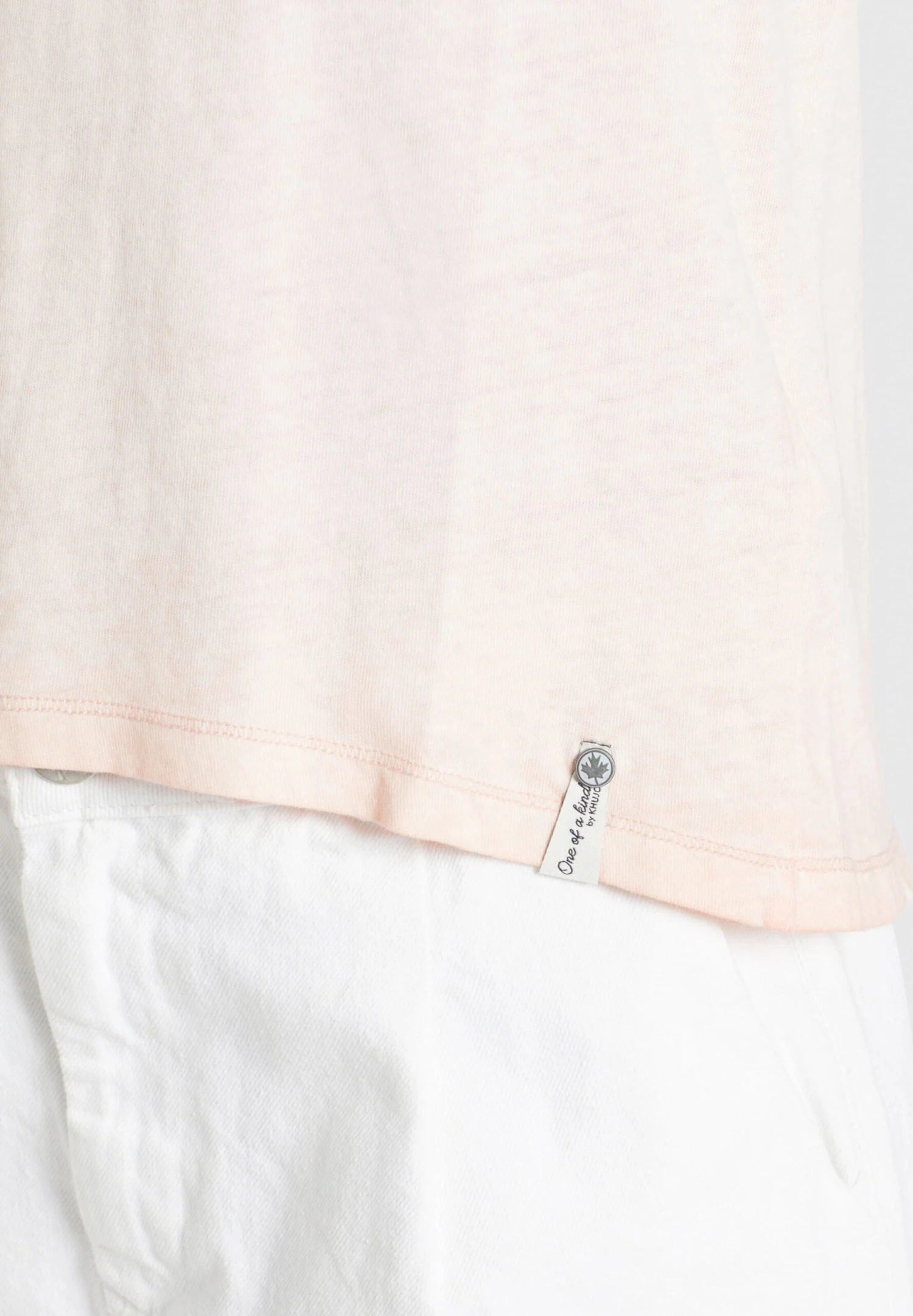 MelangeJerseyRundhals-AusschnittAbgesteppter Saum/KanteSeitliche SchlitzeZum Knoten/BindenLabel PlateLabel Patch/Label FlagTon-in-Ton-NähteWeicher Griff