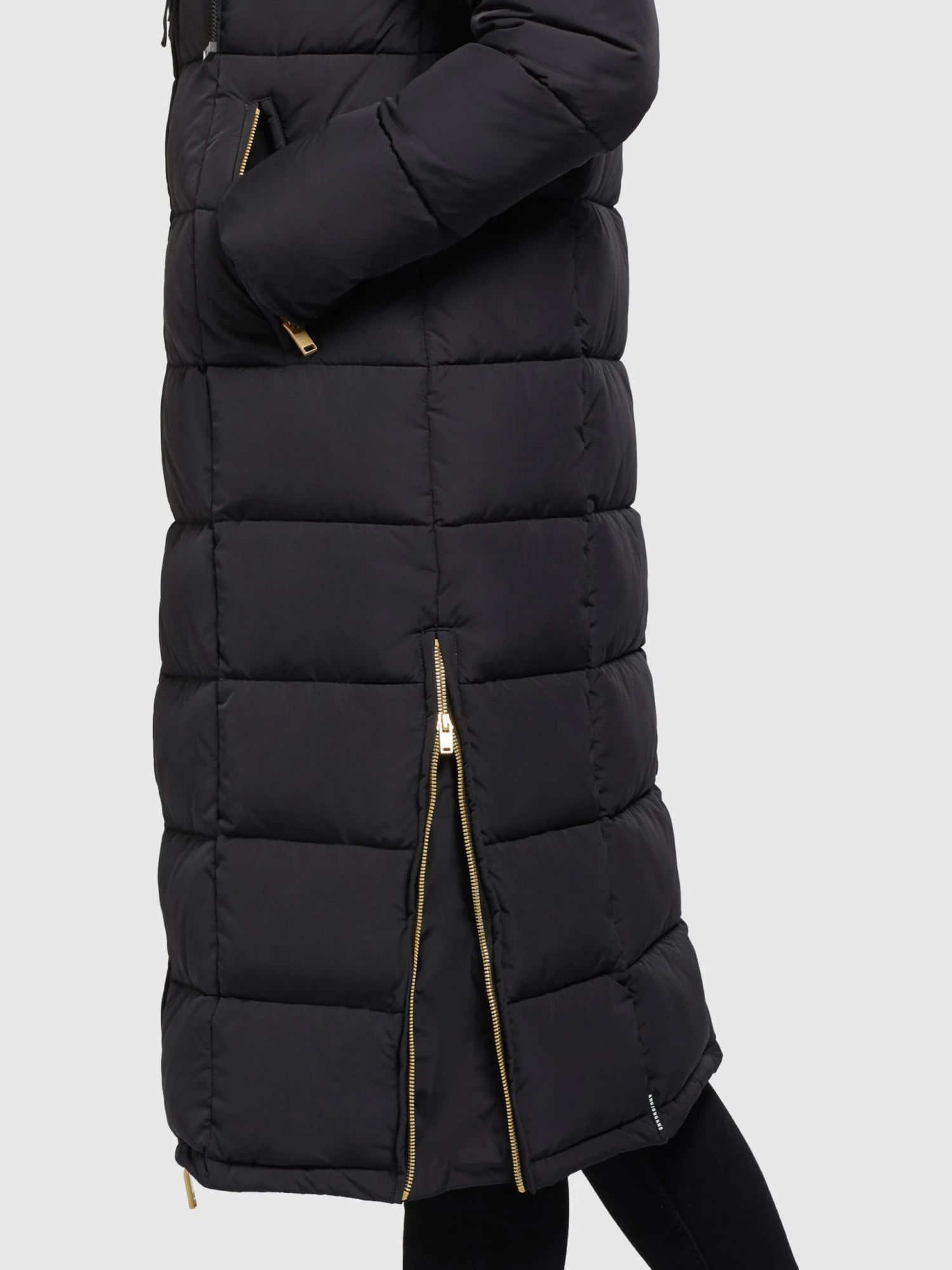 UnifarbenSteppmantelSeitlicher ReißverschlussTon-in-Ton-NähteGlatter StoffWarm gefüttertReißverschluss